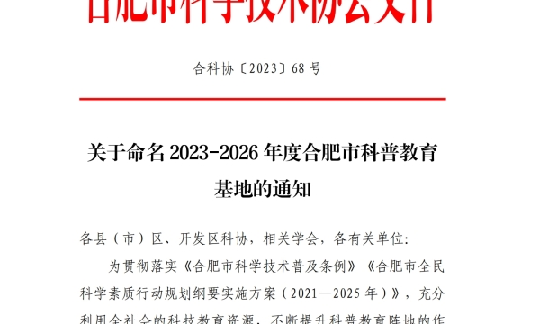 查看詳情9月21日合肥市科學(xué)技術(shù)協(xié)會經(jīng)各地各單位申報推薦、評審、驗(yàn)收、公示等程序,正式發(fā)文公布命名合肥市茶文化研究會等126 家場館為“2023-2026 年度合肥市科普教育基地”。這一榮譽(yù)是對合肥市茶文化研
